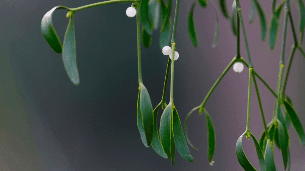 Mistletoe (Viscum album) Every Christmas, mistletoe hangs above doorways, inviting a kiss or