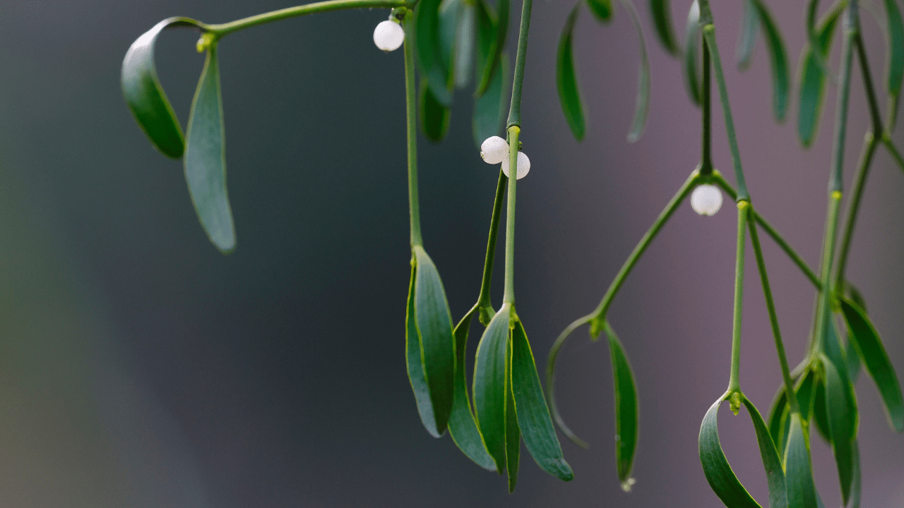 Mistletoe (Viscum album) Every Christmas, mistletoe hangs above doorways, inviting a kiss or two. But
