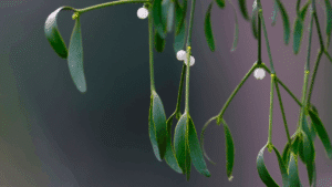 Mistletoe (Viscum album) Every Christmas, mistletoe hangs above doorways, inviting